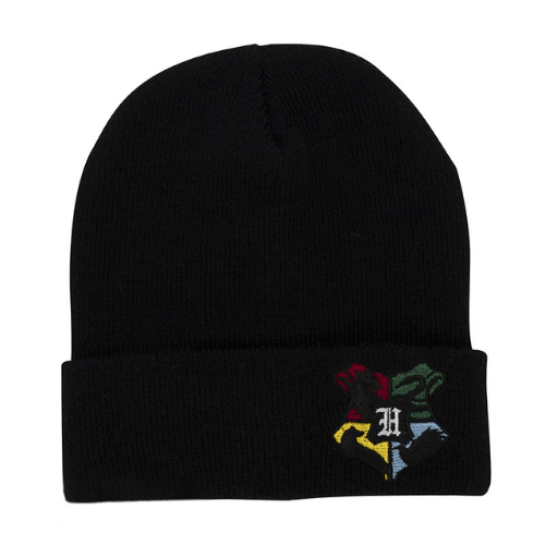 Front czapki zdobi szczegółowy, wysokiej jakości haft z herbem Hogwartu, łączący symbole wszystkich czterech domów. To elegancki, fanowski akcent, który świetnie uzupełni zimową stylizację lub codzienny outfit.