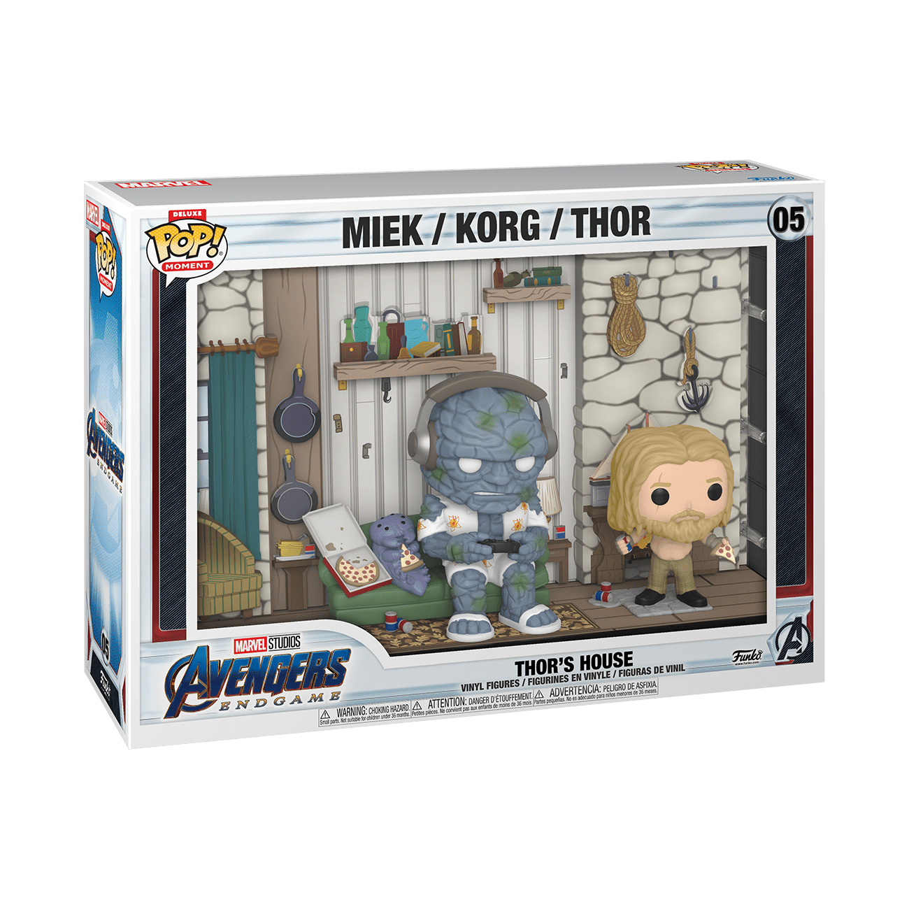 Figurka Funko Pop! Thor’s House to wyjątkowy model kolekcjonerski z serii Pop! Deluxe Moments, inspirowany filmem Avengers: Endgame. Przedstawia Thora w jego kultowej, humorystycznej odsłonie – zrelaksowanego w domowym zaciszu New Asgard, z napojem w dłoni i charakterystycznym wyluzowanym stylem. To figura, która z humorem oddaje nowy etap życia boga piorunów po wydarzeniach Infinity War.