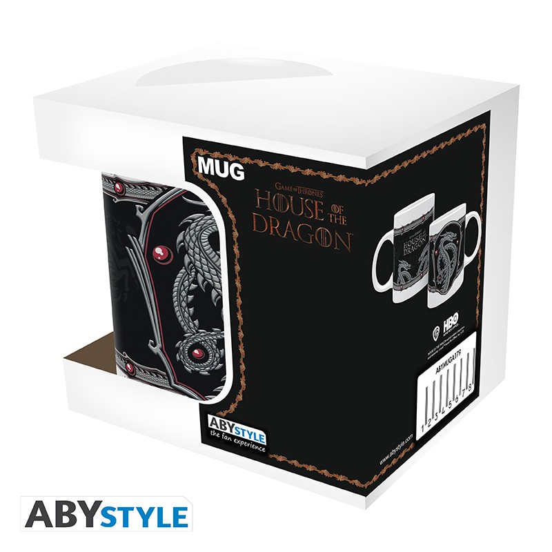 Kubek House of the Dragon Silver Dragon 320 ml od ABYstyle to stylowy gadżet inspirowany światem Game of Thrones i serialem House of the Dragon. Grafika z motywem srebrnego smoka nawiązuje do potęgi rodu Targaryen i legendarnych smoków z Westeros.
