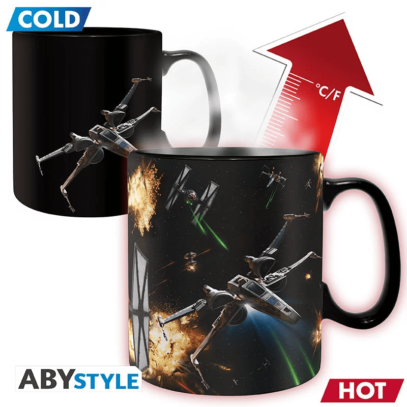 Kubek Star Wars – Space Battle od ABYstyle to idealny gadżet dla wszystkich fanów Gwiezdnych Wojen (Star Wars). Wykonany z wysokiej jakości ceramiki, zachwyca nie tylko pojemnością 460 ml, ale też niezwykłą funkcją zmiany koloru pod wpływem ciepła. To kubek, który ożywa, gdy nalejesz do niego gorący napój!