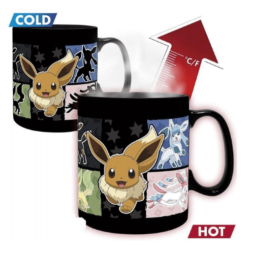 Pokémon – Kubek zmieniający kolor – Eevee od ABYstyle to wyjątkowy gadżet dla fanów uroczej Eevee i jej ewolucji! Wlej gorący napój i zobacz, jak na kubku pojawia się Eevee wraz z jej legendarnymi formami – od Vaporeona po Umbreona. Magiczny efekt zmiany koloru sprawia, że każdy poranek zamienia się w prawdziwą przygodę Pokémon!