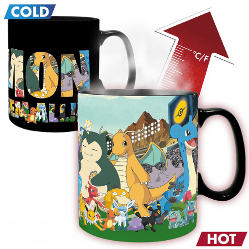 Pokémon – Kubek zmieniający kolor – Gotta Catch ’Em All od ABYstyle to wyjątkowy gadżet, który ożywi Twoje poranki! Wlej gorący napój i zobacz, jak na kubku pojawiają się ulubione Pokémony – kolorowy efekt termiczny sprawi, że każda kawa lub herbata nabierze magicznego klimatu świata Pokémon.