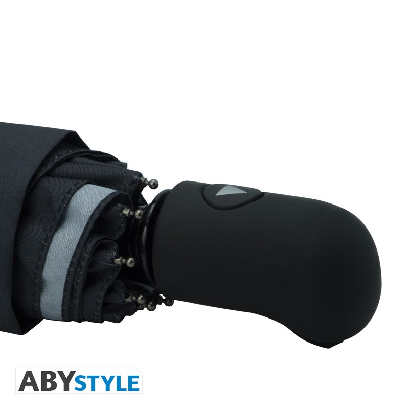 Parasol wykonany jest w 100% z poliestru i wyposażony w gumową rączkę z automatycznym systemem otwierania uruchamianym przyciskiem. Po złożeniu jest kompaktowy i wygodny w przenoszeniu, a dołączony personalizowany pokrowiec podkreśla licencjonowany charakter produktu.
