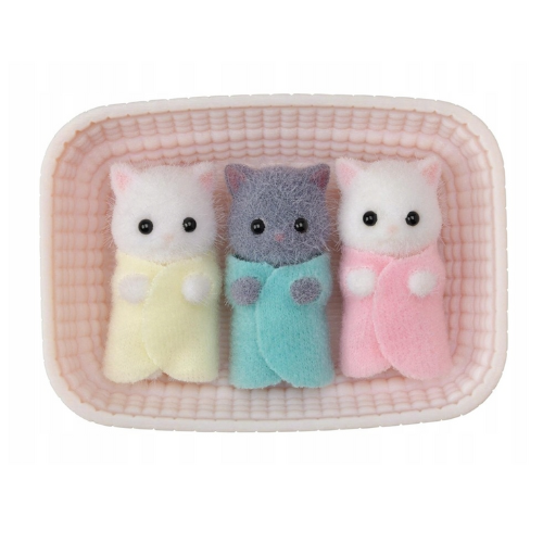 Trojaczki kotki perskie to uroczy zestaw z bajkowego świata Sylvanian Families, przedstawiający trójkę najmłodszych członków rodziny perskich kotków. Ten zestaw doskonale oddaje rodzinny, ciepły klimat Sylvanian Village i jest idealnym uzupełnieniem kolekcji.